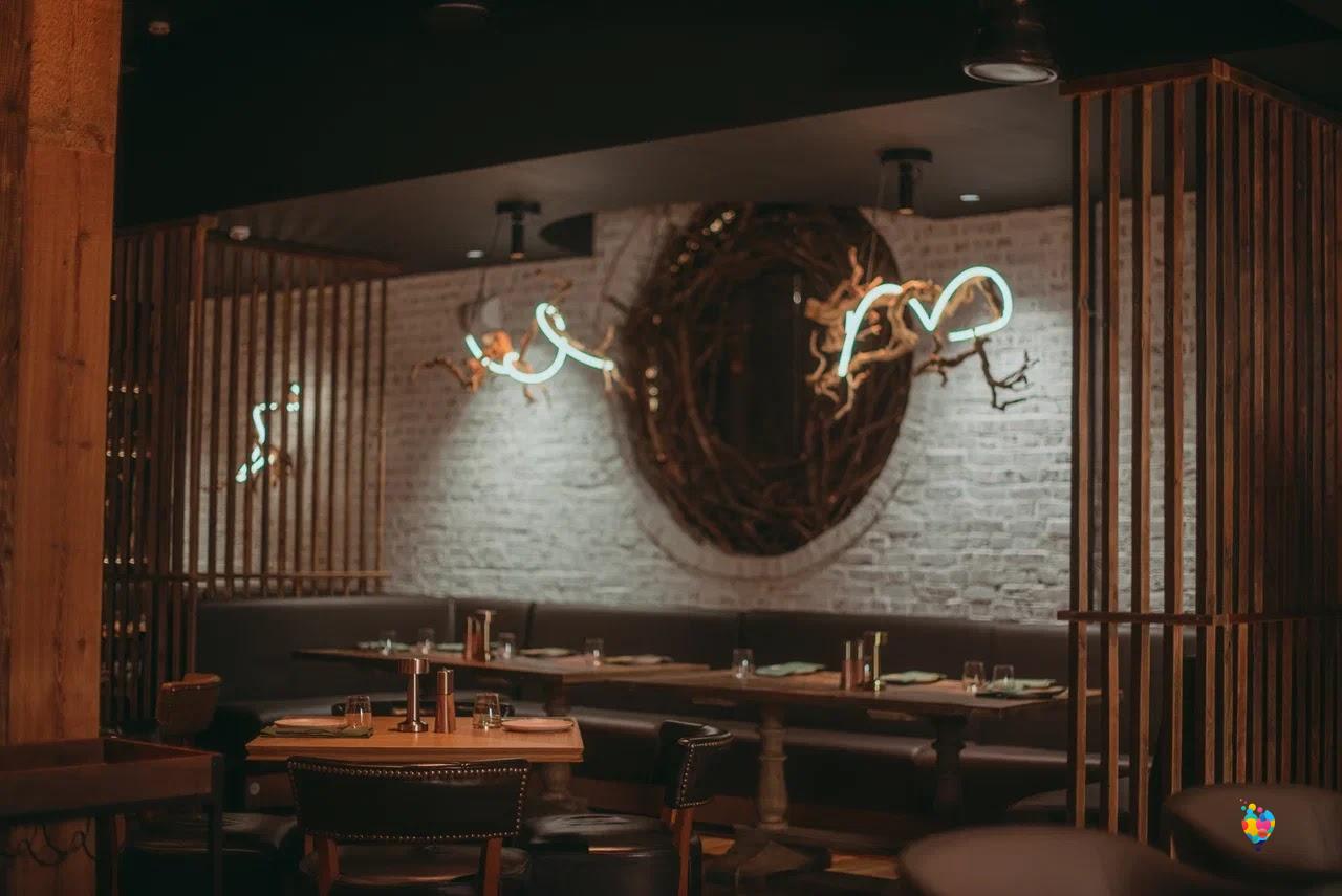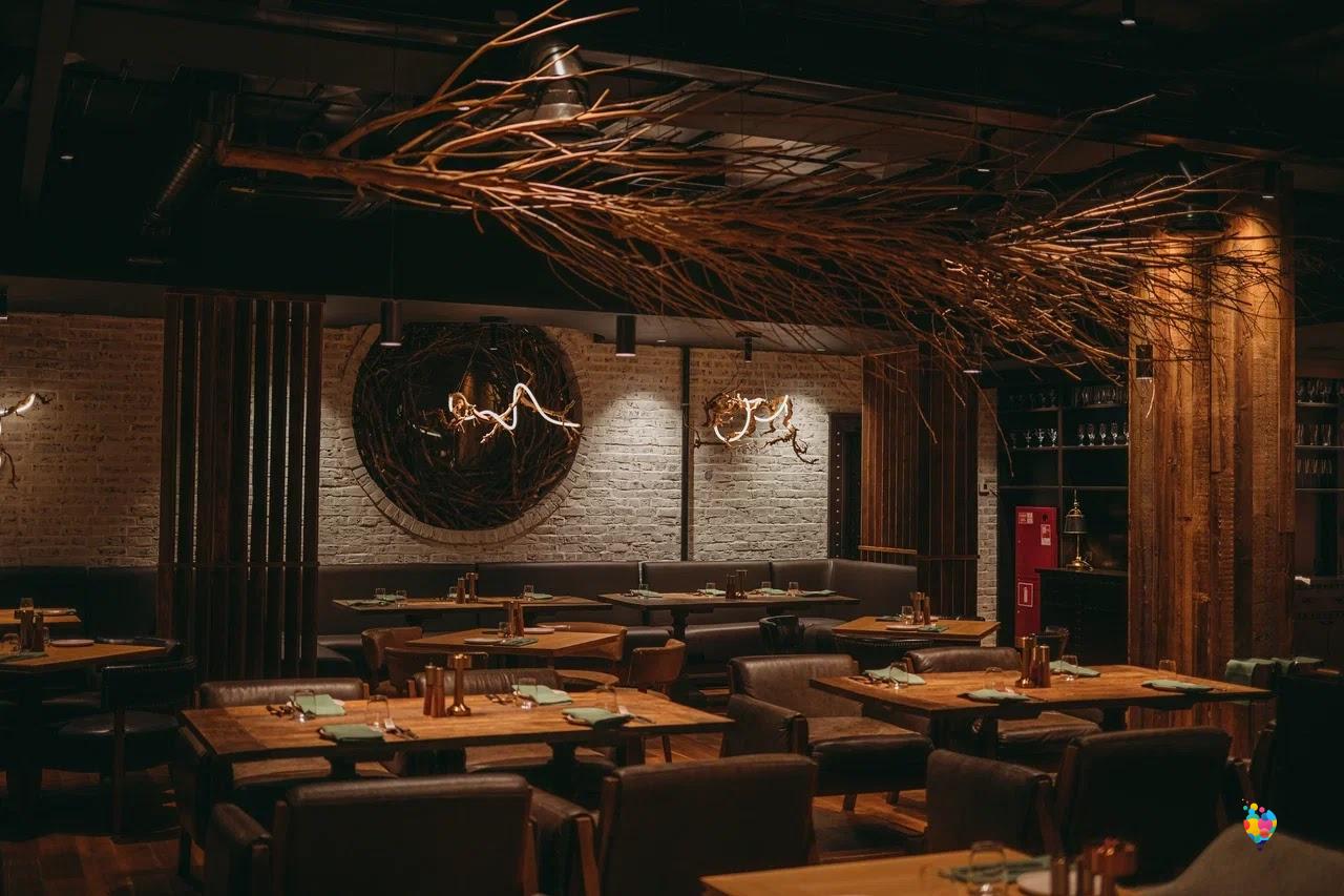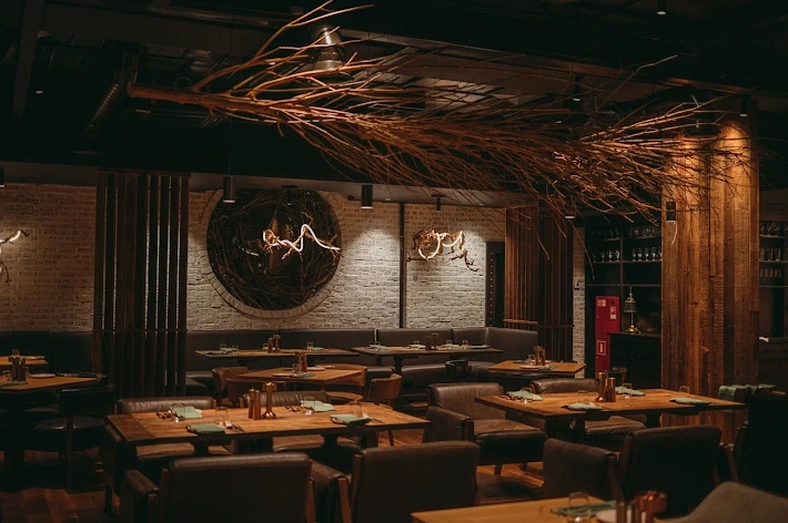 дополненные закусками и мясными сетами. Используются различные способы приготовления мяса. Акцент на копчении. Бар предлагает мировые сорта пива,
